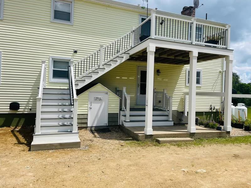 Whether you need a deck on the second story of your home or want a free-standing deck, let us put our over 20 years of deck and patio construction experience to work for you. We are licensed and insured. For a FREE estimate from a deck builder in Shrewsbury, MA, call (508) 416-8207 or fill out our online form.